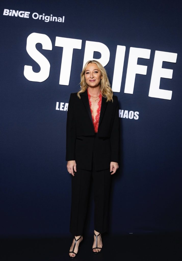 To celebrate the return of the BINGE original series STRIFE, stars Asher Keddie (below) Matt Day, Emma Lung, Mary Coustas, Maria Angelico, Rhys Mitchell, Tina Bursill, and Bryony Skillington walked the red carpet tonight at an exclusive launch event at Island Radio in Sydney alongside media personalities and TV peeps.