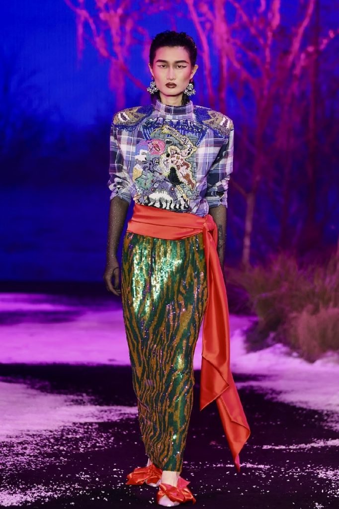 Their collections are renowned for utilising bold prints and intricate details like appliqué, embroidery and sequins to craft visually arresting pieces.